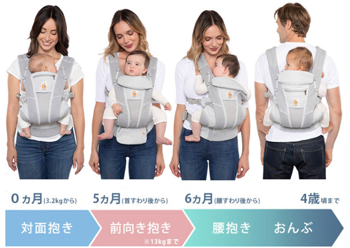 特に月齢に合わせて抱き方のバリエーションを選択できるのは長く抱っこ紐を使いたい方にとっては嬉しい配慮ですよね。